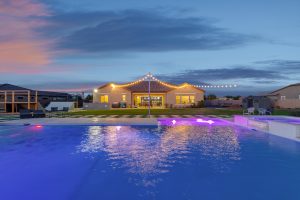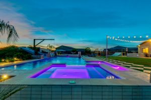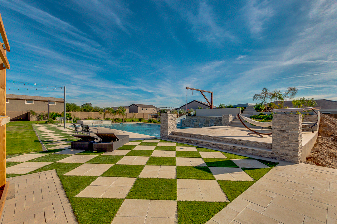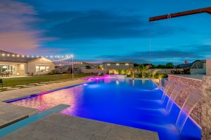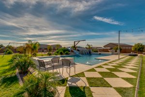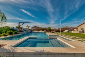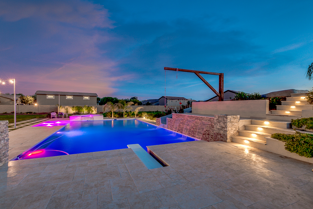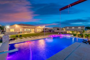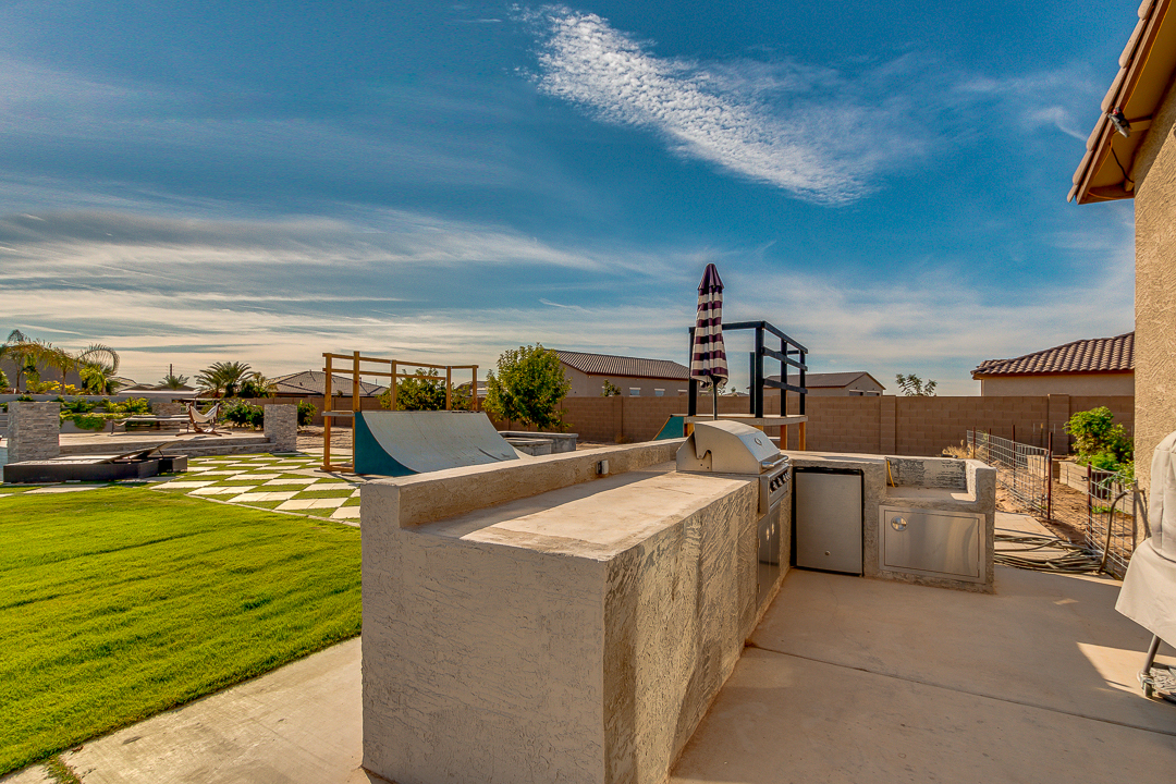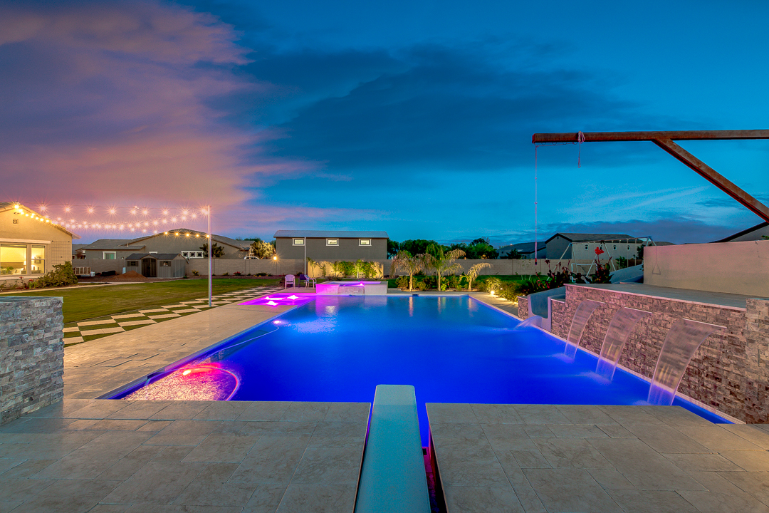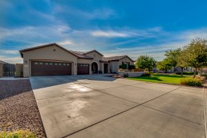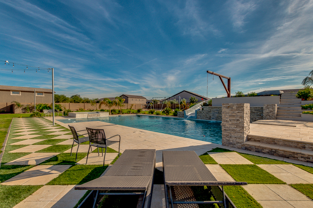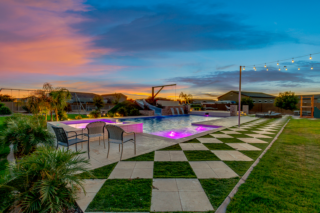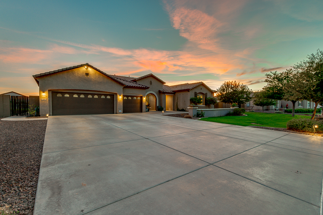 Wait until you see this gorgeous home! Just inside Queen Creek on an acre lot close to all major shopping areas and South 202 access. This home has everything, including a resort-style backyard with a massive pool featuring a diving platform, rope swing and a beautiful spa. Inside, you will find a large master suite where you will be blown away by a luxurious walk-in shower, dual sinks and his and her walk-in closets that connect to the laundry room, 4 large bedrooms and a guest suite with a private bath and sitting room. The open concept gourmet kitchen centers around a beautiful granite island, a spacious pantry, and stainless steel appliances, all of which connect to a great room allowing for outdoor-indoor living with large sliding glass doors that open to the beautiful back patio.